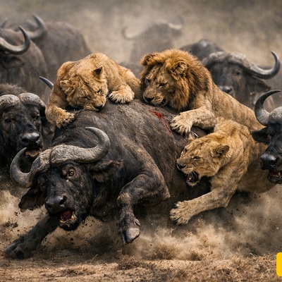 (ویدئو) مستند حیات وحش حیوانات/ نبرد شیر و گاومیش