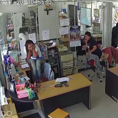 (فیلم) لحظه وحشتناک ورود ناگهانی یک بزمجه به اتاق کارمندان در اداره