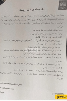 استخدام سرباز ایرانی 18 تا 45 ساله برای ارتش روسیه / حقوق 2500 دلار ماهانه، 18000 دلار پاداش