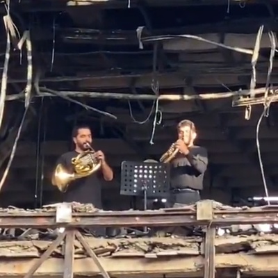 (فیلم) اجرای سمفونی آزادی در خرابههای ساختمان شیشهای صدا و سیما