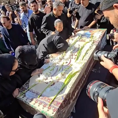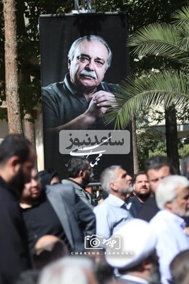 اولین فیلم از حال و هوای غم زده و دلگیر مراسم خاکسپاری محمد کاسبی با حضور اقوام درجه یک این هنرمند/ برافراشته شدن بنر تسلیت در سراسر مراسم