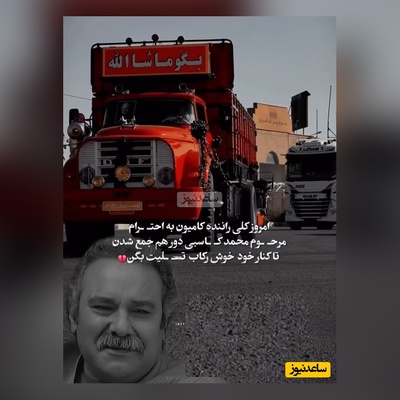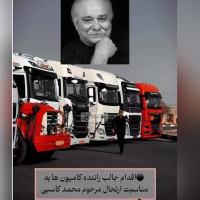 ابتکار منحصربفرد کامیونداران ایرانی در عزاداری برای محمد کاسبی با نصب روبان مشکی بر ماشینشان و قرار دادن قاب عکس بازیگر پیشکسوت در قسمت جلوی ماشین+ ویدیو/ دم شما گرم🥺