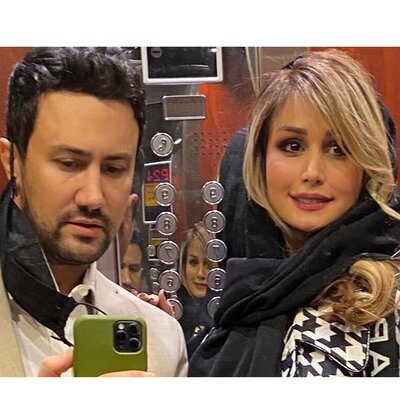 لوس شدن سپیده بزمی پور برای شاهرخ استخری/ اینجوری که چسبیده به شوهرش انگار خیلی دلتنگش بوده