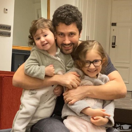 فرزندان زیبای شاهرخ استخری در آغوش پدر بزرگشان