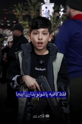 کودک دو سالهای تبریزی در میدان ساعت با شعار مرگ بر آمریکا مرگ بر اسرائیل