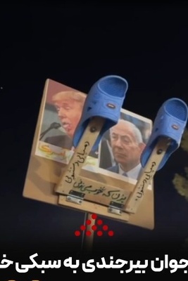 خلاقیت اعتراضی یک جوان بیرجندى در حضور پرشور شبانه مردم در اعتراض به حمله وحشیانه آمریکا و اسرائیل