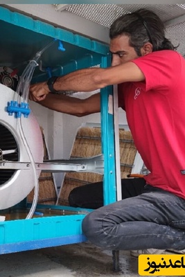 خلاقیت خنده دار اوستا مکانیک و گل محمد جوان خوش ذوق برای نصب کولر آبی روی ماشین در گرما حماسه آفرید/ مغزه اینو باید تو موزه نگه داشت...