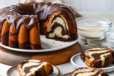 (ویدئو) طرز تهیه گام به گام کیک ماربل؛ رقصی از طعم وانیل و شکلات در هر برش!