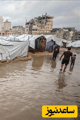 باران در غزه خیلی از چادرها رو به زیر اب برده جوریکه قابلیت استفاده ندارن+ویدیو