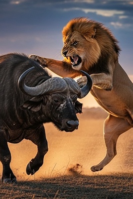 (ویدئو) مستند حیات وحش حیوانات/ نبرد وحشیانه و نفسگیر شیر و گاومیش/ رفیق خوب تمام ماجراست!