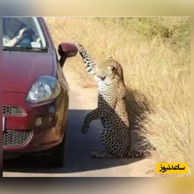 بازی بامزه «پلنگ» با تصویر بازتابشده خودش روی بدنه خودرو!
