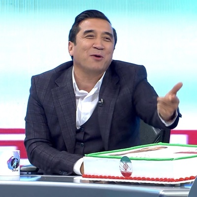 ناخونک زدن خنده دار خداداد عزیزی به کیک جام جهانی وسط برنامه زنده و پخش آهنگ حماسی/ چقدر شکمویی آخه شما😂+فیلم