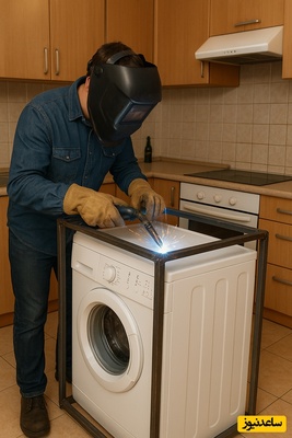 خلاقیت خندهدار اوستا جوشکار برای حل مشکل حرکت لباسشویی در کف آشپزخانه مرزهای باهوشی رو جابجا کرد/ اینو باید همینجوری مهار کرد وگرنه فردا تو کوچه میوفته دنبال مردم😂