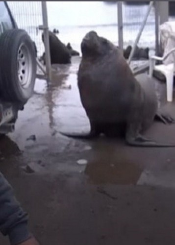 (فیلم) ورود غیرمنتظره شیر دریایی به گزارش زنده تلویزیونی!