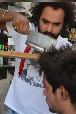 خلاقیت خنده دار یک آرایشگر برای تبلیغ کیفیت کارش حماسه آفرید+ویدئو/ داداش تو کارت درسته اما مغازت جای خوبی نیست🤣