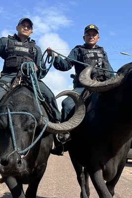ببینید؛ پلیسهای گاومیشسوار!/ با گاومیش دنبال مجرمانند!