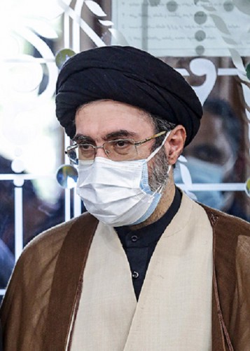 تصاویری از پسر رهبر انقلاب در مراسم ختم مرحوم محمد خجسته