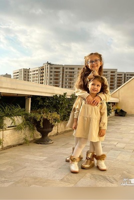 عکس بامزه و گوکولی نبات دختر شاهرخ استخری و سپیده بزمی پور با روسری سبز و گل گُلی +عکس