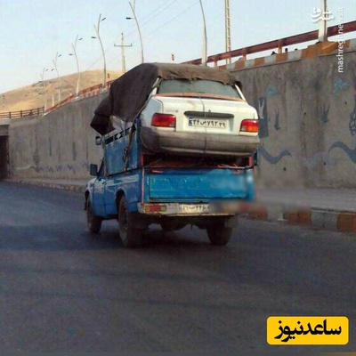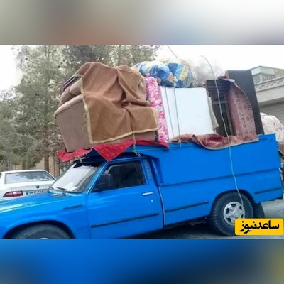 خلاقیت خندهدار راننده وانت تهرانی در حمل بار تمام قوانین فیزیک رو به تنهایی دور زد/ بفرما تکنولوژی وطنی به سبک پت و مت روزگار