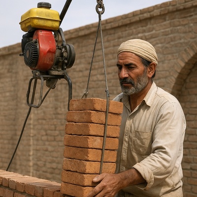 خلاقیت خندهدار و تحسین برانگیز اوستا بنای تبریزی در حمل آجر شاهکاریه برای خودش/داداش خلاق تویی بقیه اداتو درمیارن/بفرما تکنولوژی وطنی😂