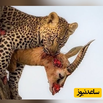 (ویدیو)پلنگ با وحشیترین اشتهایش حتی رودهی شکار را هم میبلعد!/ طبیعتی که در آن چیزی هدر نمیرود!