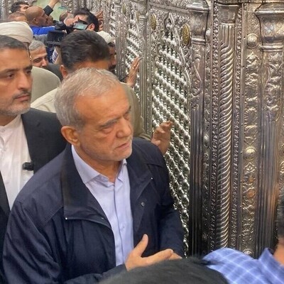 پزشکیان صبح امروز در میان حلقه محافظانش به زیارت خواهر امام رضا(ع) رفت+ویدیو/ صلوات فرستادن زائران برای سلامتی رئیسجمهور