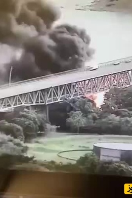 تصاویر هولناک از انفجار تانکر روی پل؛ خودروها در حلقه آتش گرفتار شدند