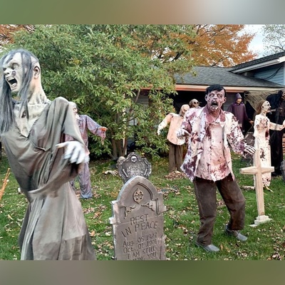 وحشت در خیابانهای آمریکا؛ نگاهی به ترسناکترین دکورهای هالووینی مردم در کوچهها / شب اینارو یکی ببینه زهر ترک میشه + ویدئو