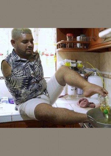(فیلم) آشپزی ماهرانه مردی که دست ندارد!