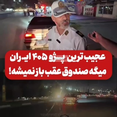 توقیف عجیبترین پژو 405 ایران و پاسخ گستاخانه راننده به پلیس؛ من بهت احترام گذاشتم نگه داشتم، صندوق عقب باز نمیشه