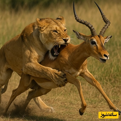 روایت هیجانانگیز از قلب طبیعت وحشی: لحظه باورنکردنی کمین بینقص شیر ماده و حمله برقآسا به گوزن یالدار! +ویدیو