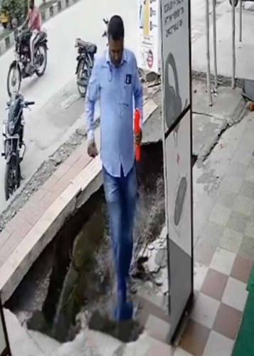 (فیلم) ریزش زمین زیر پای یک مرد هندی