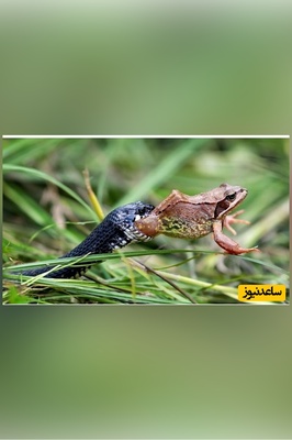 لحظه بلعیده شدن یک مار سمی توسط قورباغه +ویدئو