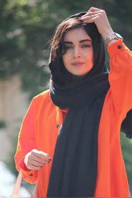 چهره ناز و زیبای مهشید جوادی با مانتوی نارنجی رنگش