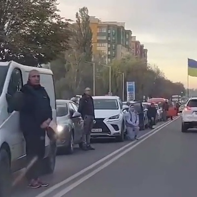 (ویدیو) رانندگان اوکراین به احترام سربازان کشته شده جنگ در وسط اتوبان زانو زدند