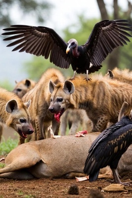 ویدئوی حیات وحش روز؛ این ماجرای راز بقا: جشن خونین کفتار و کرکس بر سر جسد گوزن
