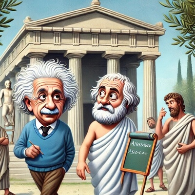 تصویر / گفتگوی علمی افلاطون و اینشتین در دل آتن؛ جایی که فلسفه و فیزیک دست در دست هم مرزهای علم را میشکند