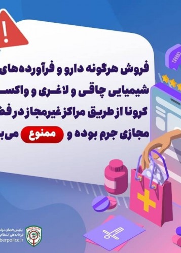 فروش هرگونه دارو و فرآوردههای شیمیایی چاقـی و لاغــری و واکســن #کرونا از طریق مراکز غیرمجاز در فضای مجازی جرم بوده و ممنوع می باشد