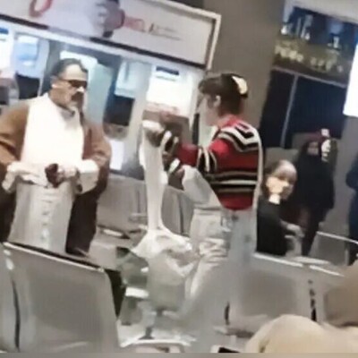 پشت پرده ماجرای زنی که عمامه روحانی در فرودگاه را برداشت؛ همسر این خانم توضیح میدهد+ ویدیو
