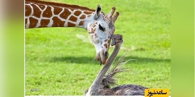 ببینید| رویارویی زرافه و شترمرغ؛ خیره شدن برای رقیب؟