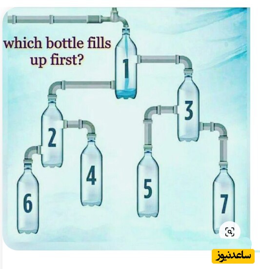 جواب : با توجه به اینکه تمام مسیر ها بسته است فقط بطری 5 امکان پر شدن دارد
