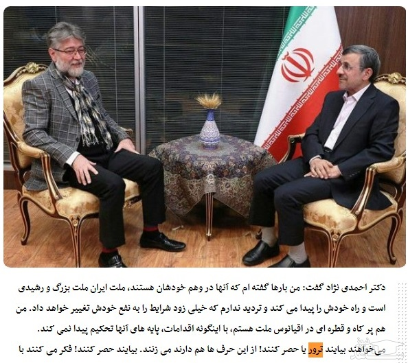 ادعای ظهور، زلزله، جنگ، ترور و ... مواردی بود که احمدی نژاد به واسطه آنها تلاش کرده است همیشه در فضای رسانه ای کشور مطرح شود. تقلا برای دیده شدن و بر هم ریختن افکار عمومی به واسطه همین ماجرا طی سالهای اخیر به ویژگی ثابت این سیاستمدار سابق کشورمان بدل شده است. آنچه او تلاش می کند از مخاطبش حذف کند تا دیده شود همین عقلانیت و منطق است که اگر کسی با چنین ابزاری با ادعاهای عجیب او مواجه شود هیچ وقت این ادعاها محلی از اعراب پیدا نمی کند.