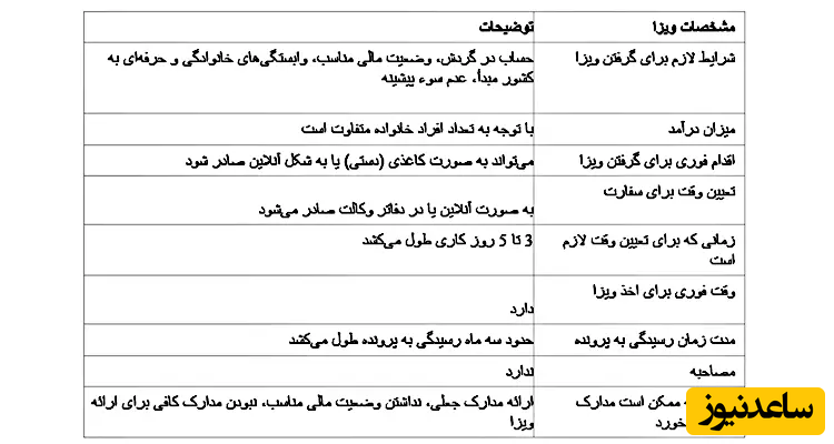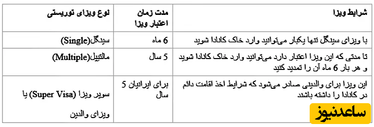 در جدول زیر انواع ویزاهای فوری کانادا آورده شده است: