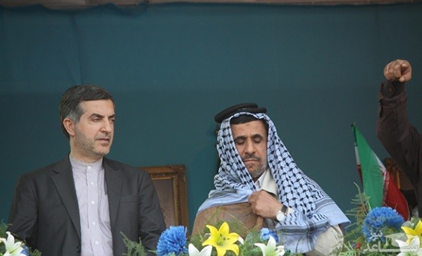 عکس جنجالی و دیده نشده از محمود احمدی نژاد با عبا و شال عربی