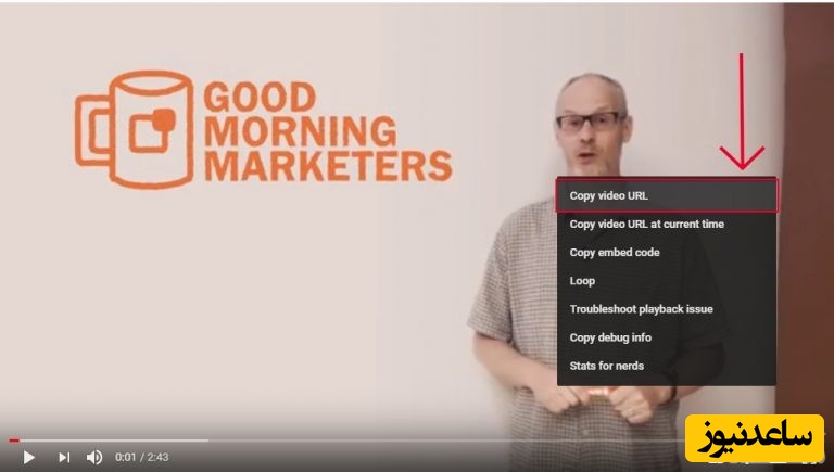 توجه: برای کپی کردن آدرس ویدئو از یوتیوب، روی ویدئو کلیک راست کنید و روی Copy video URL کلیک کنید.