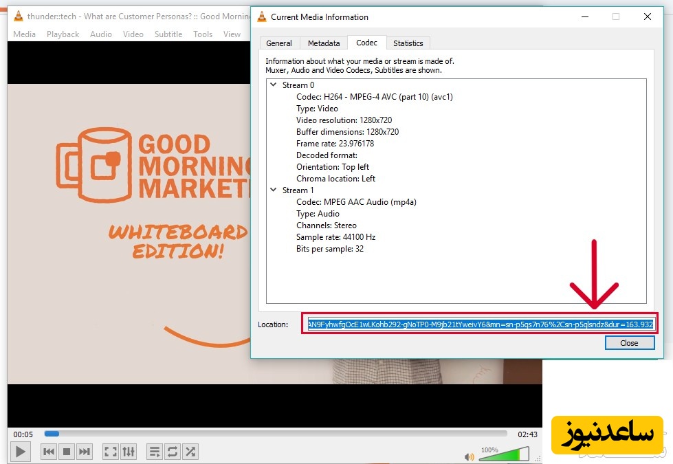 خب اگر تمام مراحل بالا را به درستی رفته باشید الان ویدئوی شما در VLC در حال پخش است. حالا اگر بخواهید ویدئو را ذخیره کنید باید مراحل بعدی را انجام دهید.