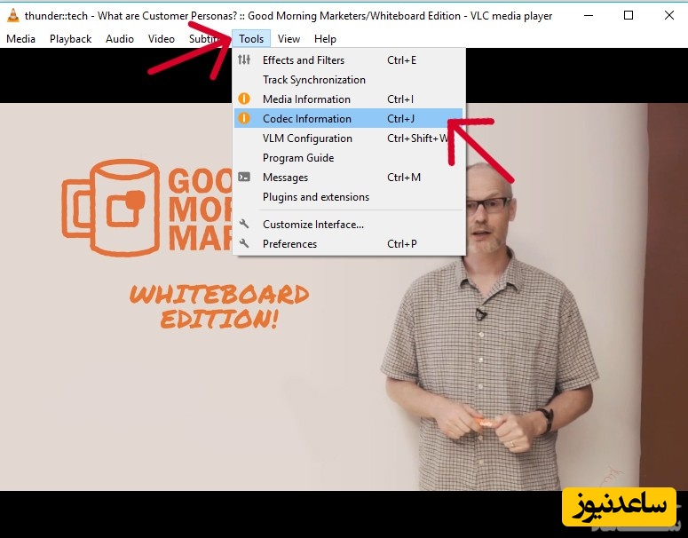 4- از منوی بالای پلیر روی Tools کلیک کنید و بعد Codec Information را انتخاب کنید.