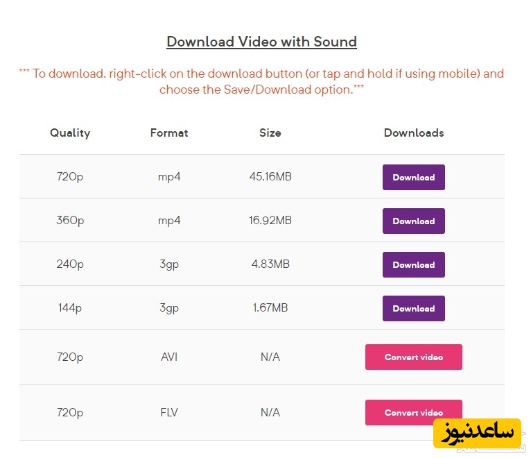 دانلود از یوتیوب با استفاده از savefrom.net