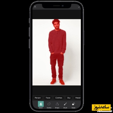 این برنامه به طور خودکار فرد در تصویر را با رنگ قرمز تشخیص می دهد تا برش داده شود. هر قسمت از دست رفته را با قلم مو دوباره قرمز کنید یا در صورت نیاز هر قسمت غیر ضروری را پاک کنید. ذخیره را انتخاب کنید حالا فرد بریده شده به عنوان یک برچسب جدید ذخیره می شود.