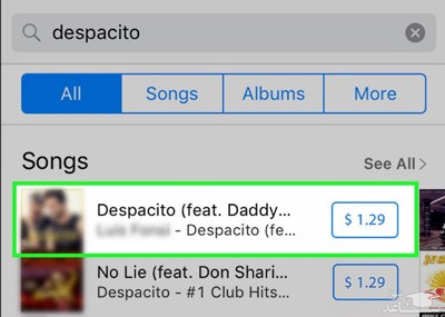 یک آهنگ، هنرمند یا نام آلبوم را تایپ کنید. شما می توانید آهنگ های فردی و یا کل آلبوم را از Apple Music دانلود کنید.